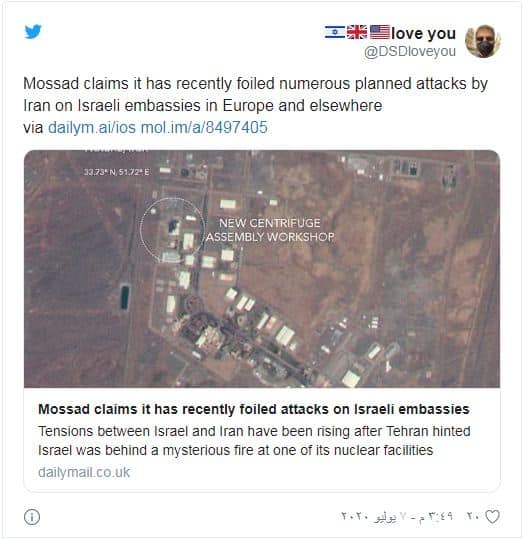 ونقلت الصحيفة عن تقرير بثته “القناة 12” الإسرائيلية الناطقة باللغة العبرية، والذي أشارت فيه إلى أن “الموساد” استطاع إحباط عدة مخططات إيرانية في أوروبا وأماكن أخرى في العالم، منوها (التقرير) إلى أن إيران “العدو اللدود لإسرائيل كانت وراء هذه المؤامرات”.