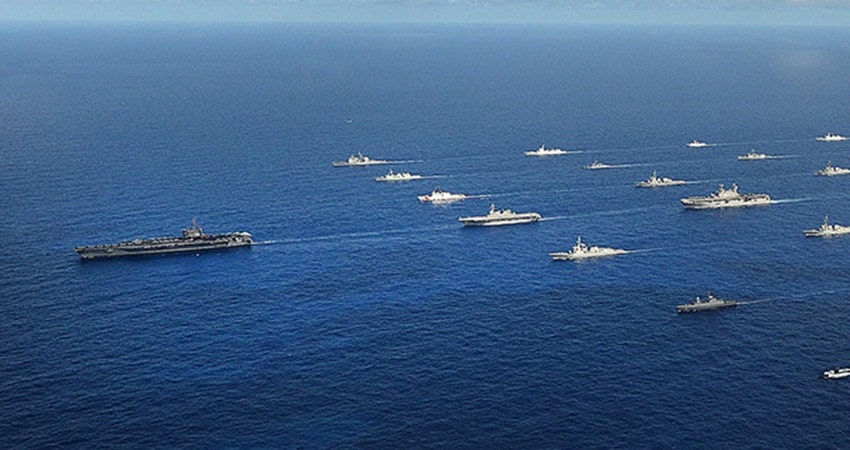 وشاركت في المناورات التي أجريت قرب جزر هاواي 10 دول، بينما استهدفت السفينة قوات 4 دول.