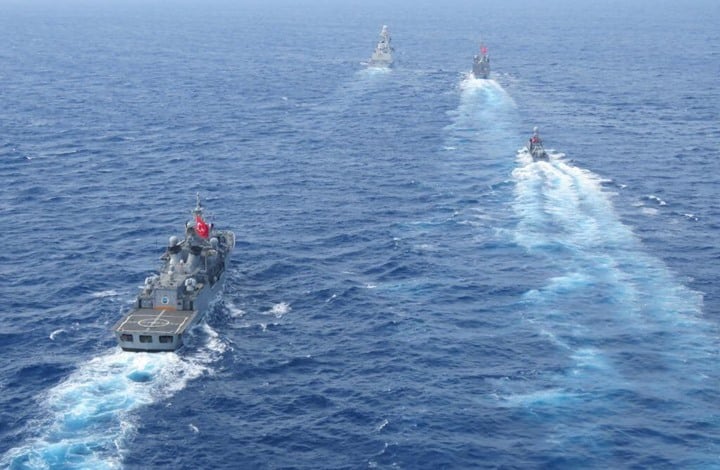 وكانت السفينتان الحربيتان تتابعان سفينة تركية تقوم بأعمال مسح للتنقيب عن النفط والغاز في مياه متنازع عليها في البحر المتوسط غربي قبرص.