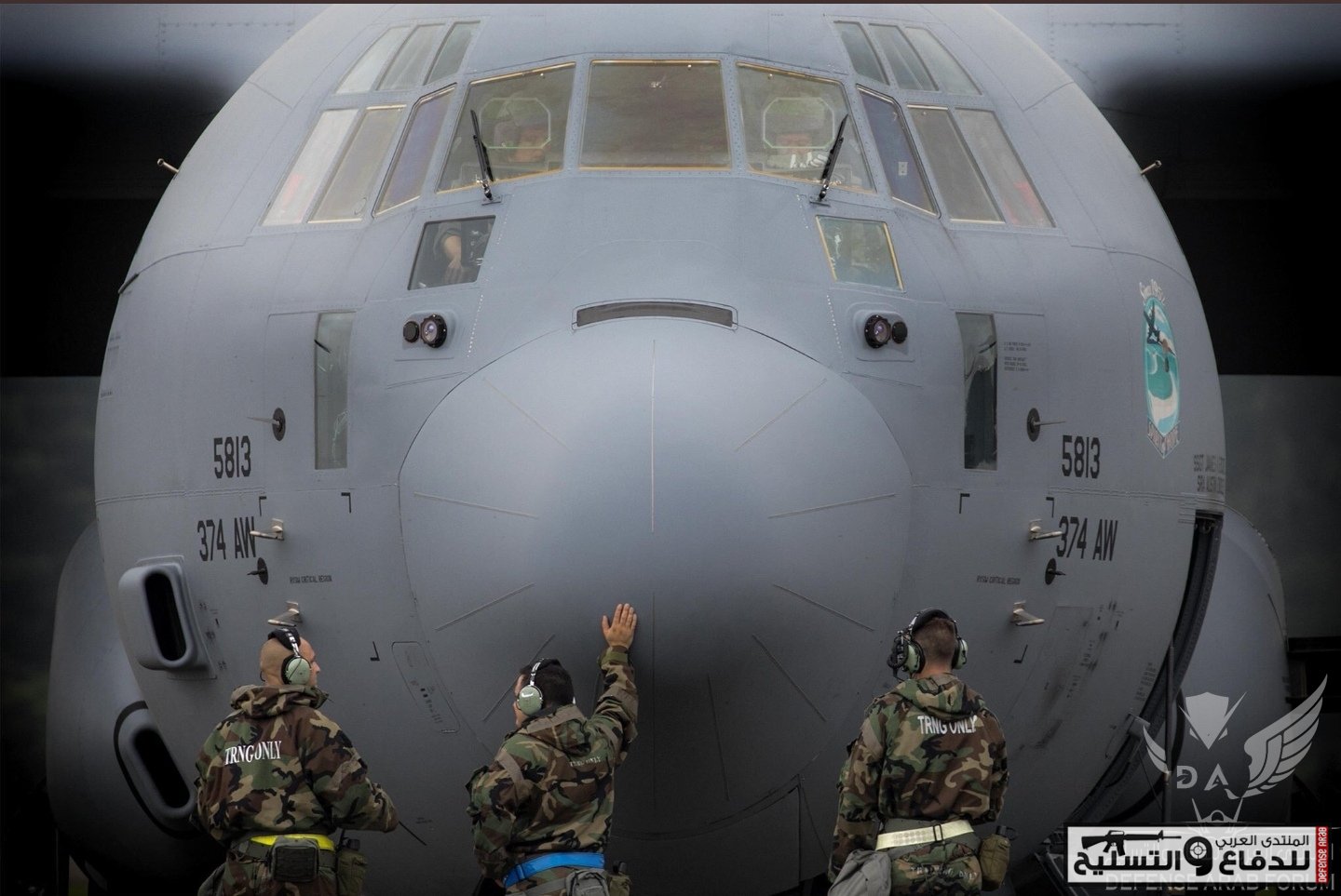 صورة يظهر فيها حنية الطاقم الفني على C-130J