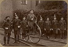 الدرك الإمبراطوري الروسي مع دراجة السكك الحديدية ، حوالي عام 1900