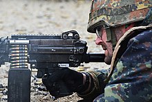تتصل وصلات M27 بما يصل إلى 200 طلقة من طلقة الناتو 5.56 × 45 م (4 × M855 كرة: 1 M856 تتبع) الموجودة في صندوق الذخيرة المستخدم لتغذية مدفع رشاش خفيف M249