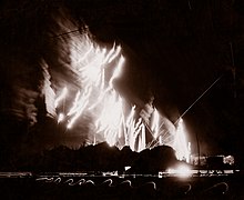 ذخيرة التتبع التي أطلقها جيش الولايات المتحدة والتي تم التقاطها في صورة طويلة التعرض لهجوم ياباني على بيليليو ، 1944