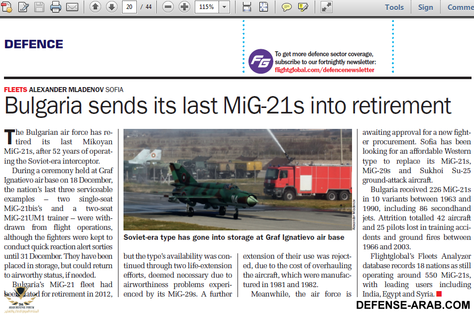ههههه لسان حالها يقول بعد 52 سنه خدمه تبيعوني بالرخيص لمكبس الحديدبلغاريا سرحت اخر ميج 21 عندها عقبالنا يارب هو الموضوع قديم شوية لكن لم اقرأه إلا الان مشاهدة المرفق 48922