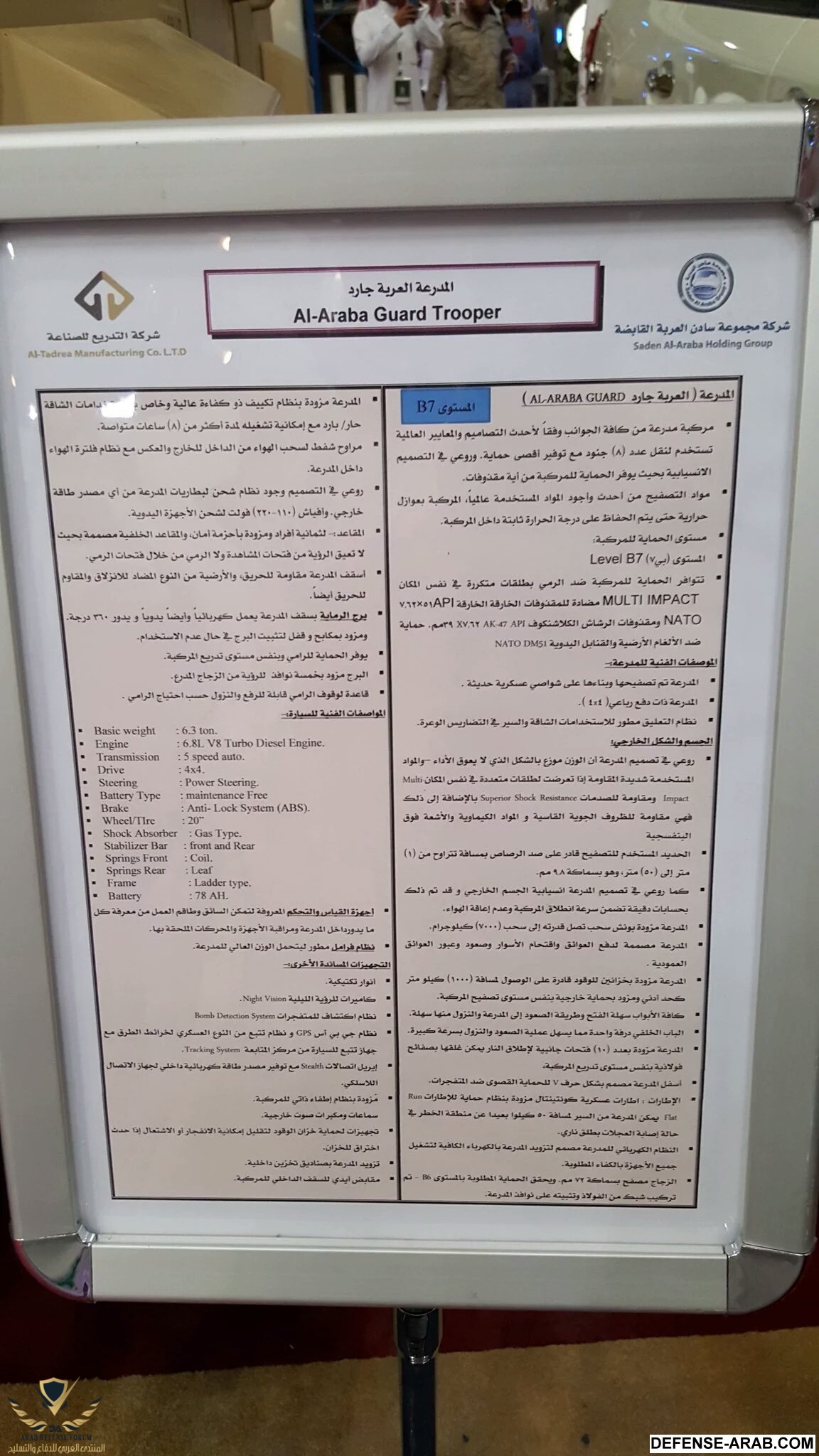 المدرعة توفر حماية من مستوى B7 مستوى حماية لا تقدمه الأوشكوش ! وتسير لمسافة 1000 كلم على الأقل وبها مواصفات لا تتواجد في كثير من منتجات دول المنطقة ... وتقول عربة عادية ,, حرام عليك