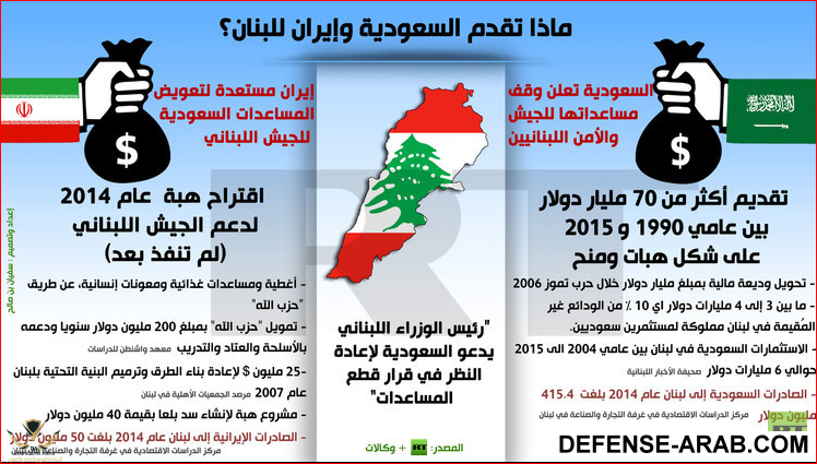 أوقفت الرياض مساعداتها المقررة لتسليح الجيش اللبناني عن طريق فرنسا، وقدرها 3 مليارات دولار أمريكي، إلى جانب إيقاف مليار دولار أمريكي مخصصة لقوى الأمن الداخلي اللبناني.