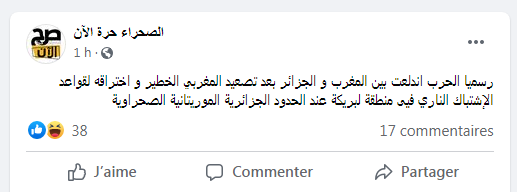 صفحاتهم الآن تقول أن المغرب اعتدى على الجزائر و ان الحرب قادمة ، يتمنون من اعماق قلبهم ان تدخل الجزائر الحرب مكانهم و يموت بوصبع مكانهم ، أما هم يعرفون انهم ضعفاء أمام المغرب و مستحيل يحققوا شئ