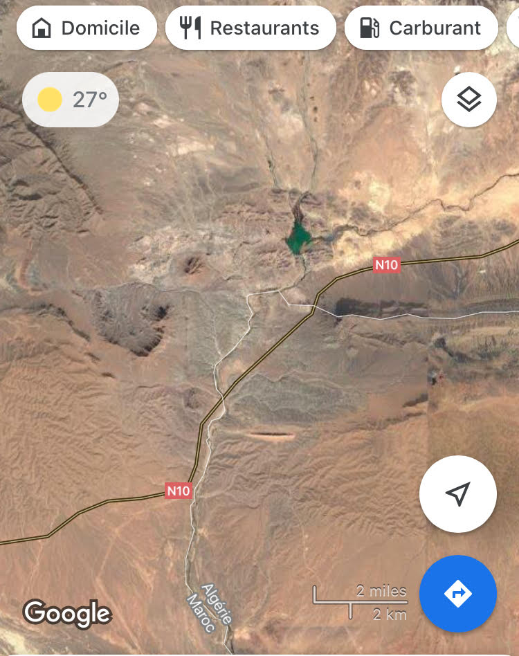 يبدو انا الجزائر تبحث عن مبرر بأي ثمن , الصورة تظهر مرور الطريق الوطنية رقم 10 فوق التراب الجزائر بامتار قليلة في منطقة بوعنان .....