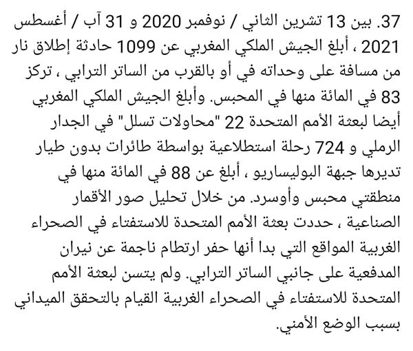 وهم فرحين بما جاء في تقرير هههههههههههو في نفس التقرير { المنقول عن المرتزقة } المغرب ينفي أي إستخدام لطيرانه المسير شرق المنطقة العازلة