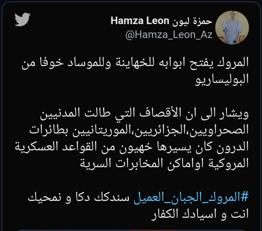 لكن بمجرد سخن الطرح و كشر المغرب عن أنيابه و بدأ القتلى يسقطون عندهم بالعشرات أصبح يطالب بتوقيف العبث ، قلت لكم هم مجتمع صغير جدا و لا يقدرون على تحمل الكلفة البشرية للحرب خصوصا وسط الأجيال الشابة الجديدة الاقل حماس للقضية و التي كل همها توفير لقمة العيش و فرصة شغل مثل بقية شباب العالم .