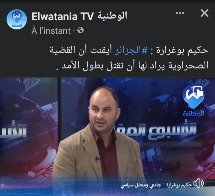 مشكلتهم أن العالم بأسره أصبح مدركا أن القضية هي بين النظام الجزائري والمغربي، أي أنه نزاع ثنائي إقليمي، وأن تبريرات من قبيل حقوق الشعوب في تقرير المصير ليست سوى لذر الرماد على العيون، المسألة مسألة صراع على ريادة المنطقة بدأه النظام الجزائري زمن بومدين في 75 ومازال مستمرا مع الأسف إلى الآن.مشاهدة المرفق 451313