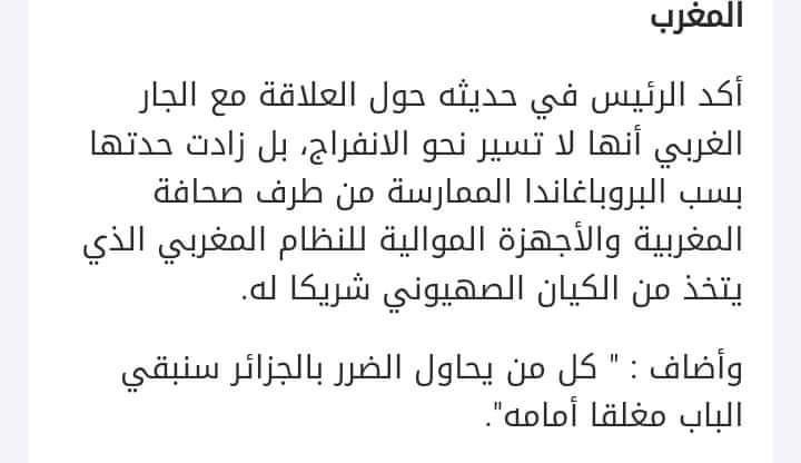 "الرئيس الجزائري🇩🇿 عند تحدثه عن العلاقات مع المغرب🇲🇦: