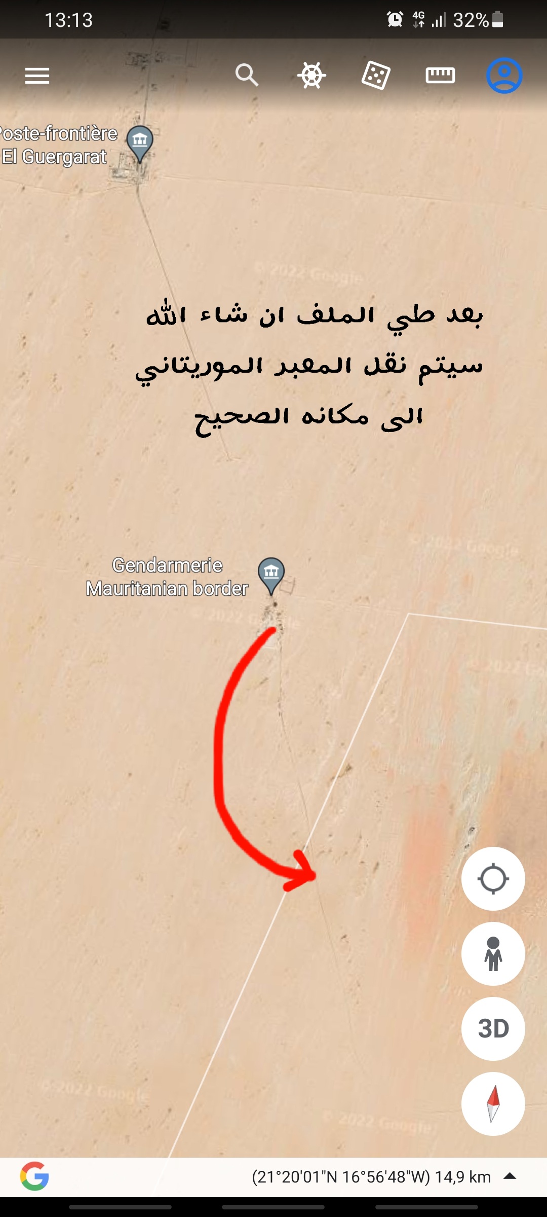 هناك جدار يمر جنوب الثكنة المغربية الجديدة هل هو الجدار الجديد الذي شيدة المغرب بعد تنظيف معبر الكركرات من الجراثيم؟