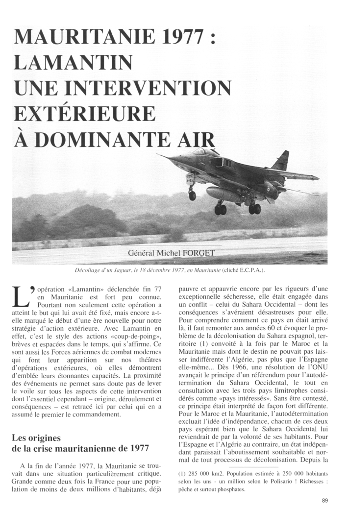 لما هاجمت البوليساريو مناجم الحديد بمنطقة الزويرلت في سنة 1977 وتم إختطاف مهندسين وعمال فرنسيين تدخلت طائرات فرنسا بعملية تسمى Lamantin حيث أغارت طائرات الجاغوار التابعة لسلاح الجو الفرنسي على قافلة لمقاتلي البوليساريو في طريق عودتها الى تيندوف وأدت العملية لمصرع العشرات من المهاجمين