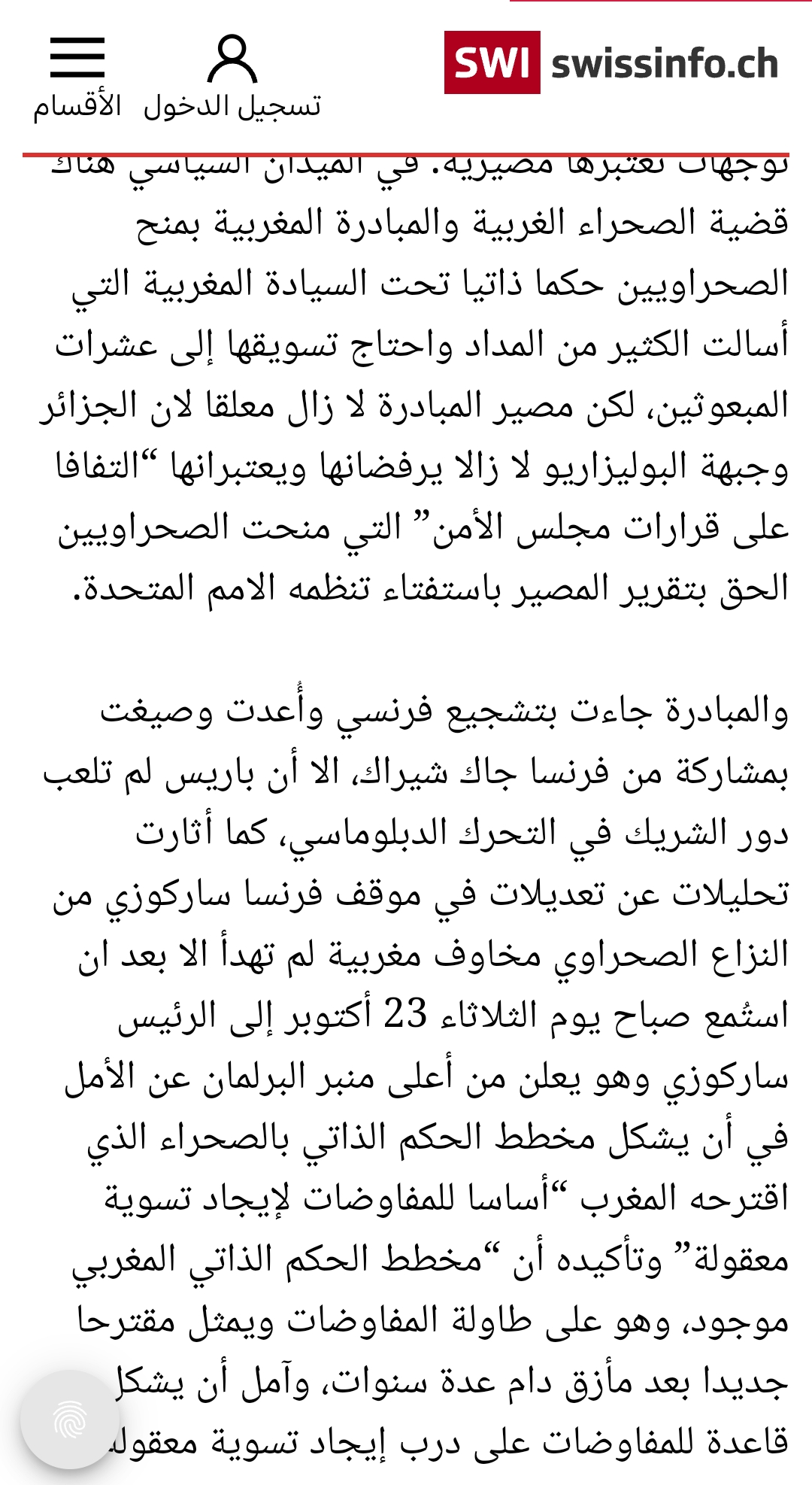 لا يوجد أي تغيير في الموقف الفرنسي ، لأن فرنسا جاك شيراك هي من اتى بفكرة مخطط الحكم الذاتي و صاغها أساسا، و تدعمه علنا مرة و تتراجع عنه مرات أخرى .