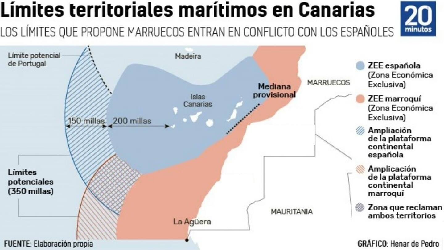 هل تعلم أن المغرب محروم اليوم من خيرات المحيط الأطلسي و أكبر حصة من الحدود البحرية في المحيط الأطلسي هي لصالح جزر الكناري وهناك خلاف إسباني مغربي حول الحدود البحرية وإسبانيا تستولي على الحدود البحرية من المحيط الأطلسي اكبر من المغرب مع ان إسبانيا لا تطل على المحيط الأطلسي!