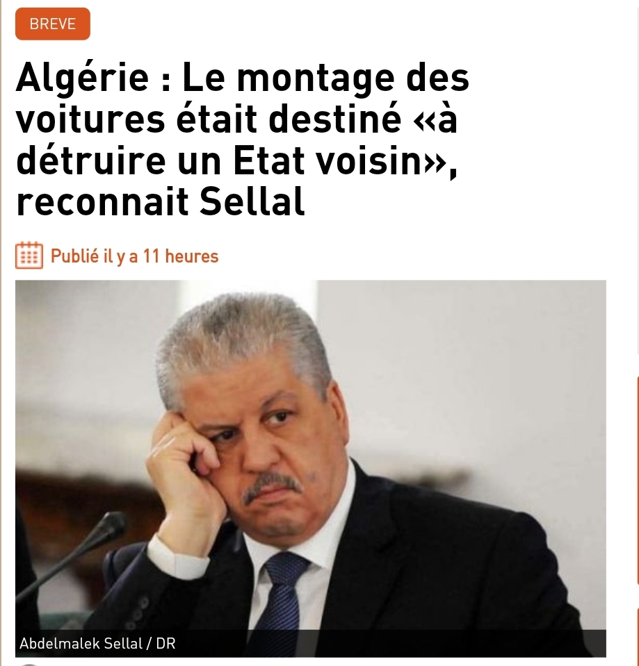 l’ancien Premier ministre Abdelmalek Sellal à justifié à deux reprises le cadeau offert aux industriels par la volonté de «détruire un Etat voisin avec le montage des voitures»