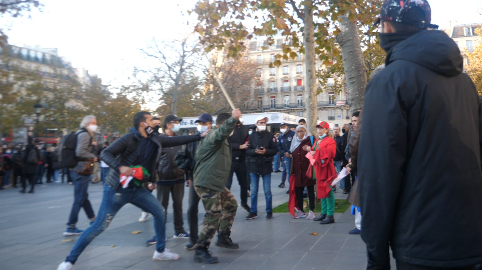 شخص يلوح بعصى في وجه سيدتين شيء غير مقبول مطلقا. أتمنى ان تتم متابعة هذا الشخص أمام القضاء الفرنسي من طرف السفارة المغربية حتى يكون عبرة لغيره و حتى لا يتجرأ الحثالة على مثل هذه الأشياء.
