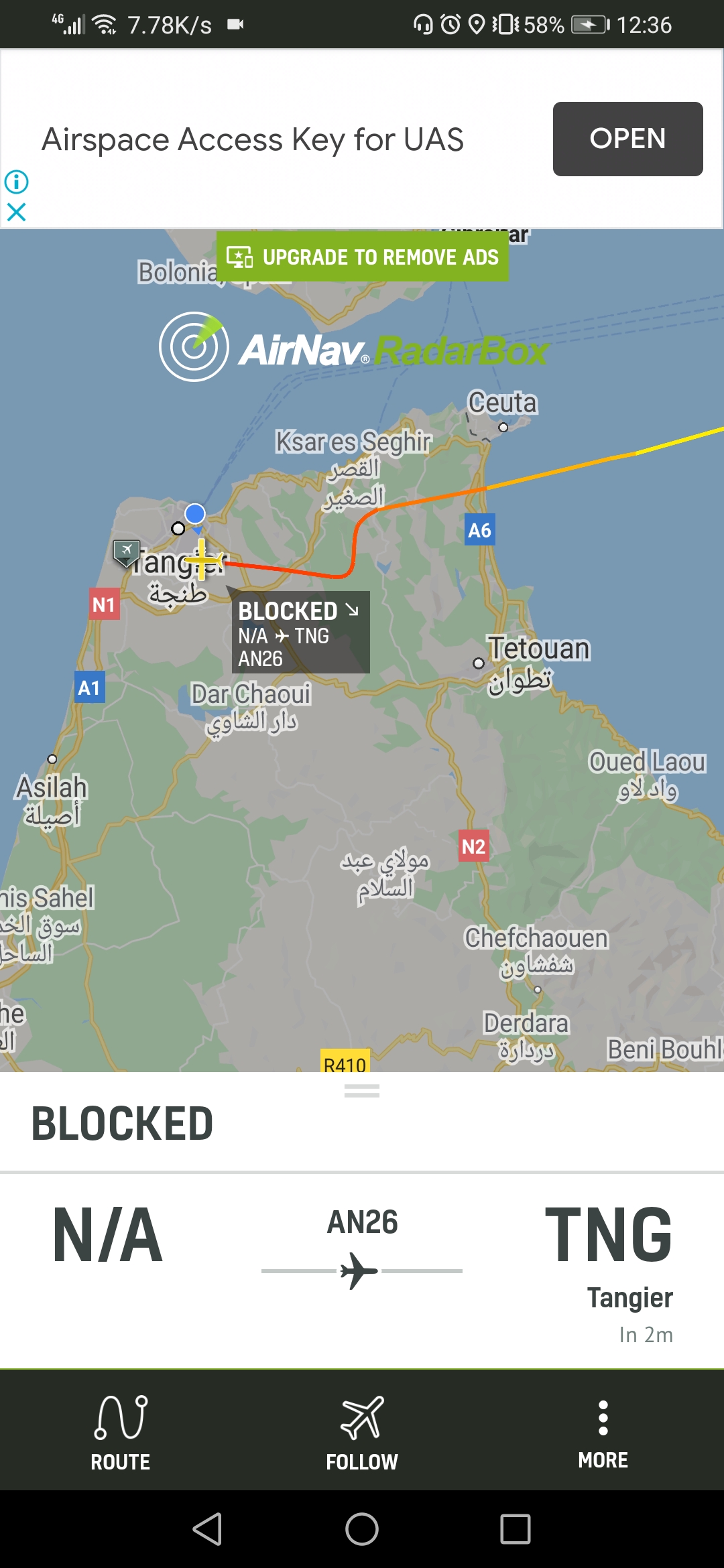 طائرة الخطوط الجوية المغربية تأتي من تونس لطنجة تمر بارتفاع منخفظ ومع الملل فتطوان بقينا حاضينها كول ليلة ف 12:30