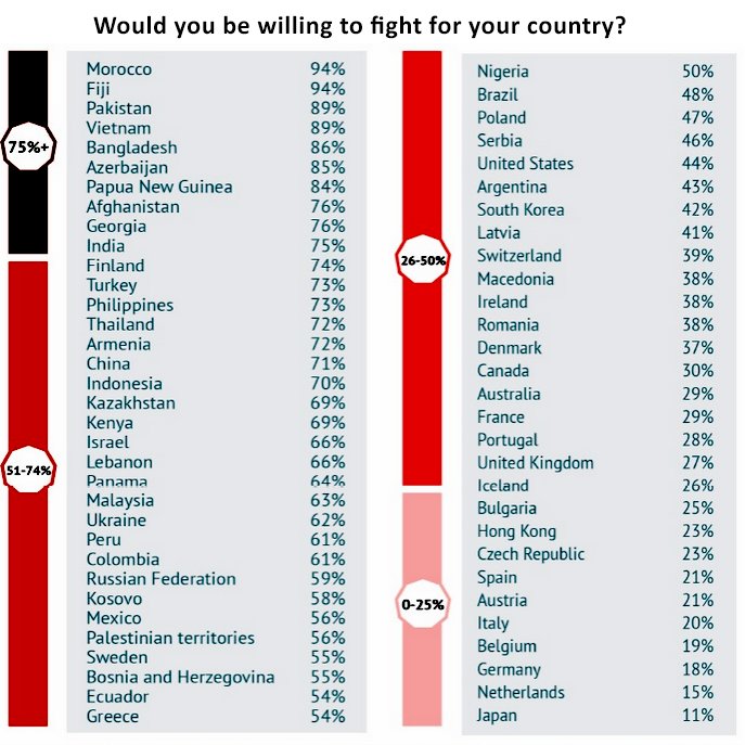 استطلاع للرأي حول مدى استعداد المواطنين للقتال من أجل بلدهم.