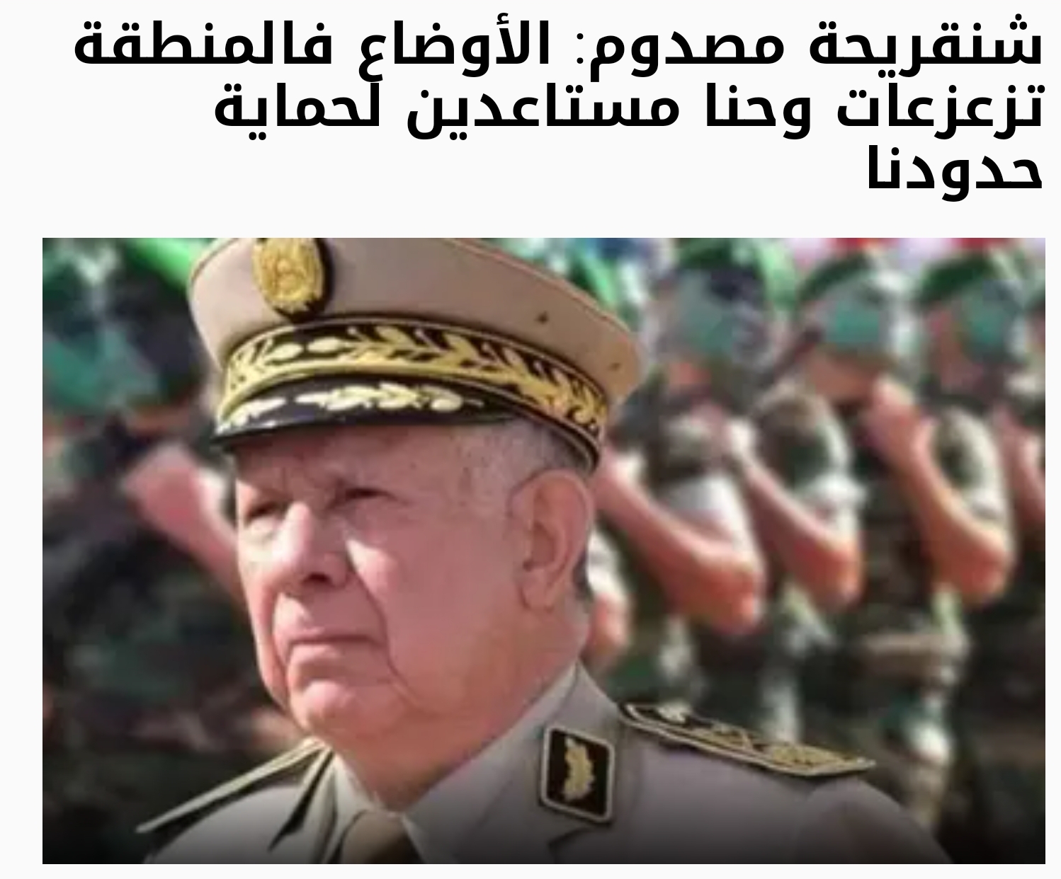 فخرجة جديدة لرئيس اركان الجيش الجزائري السعيد شنقريحة، حاول توجيه الاتهامات العشوائية لما أسماه بعض البلدان المغاربية التي تحاول زعزعة الإستقرار بالمنطقة.