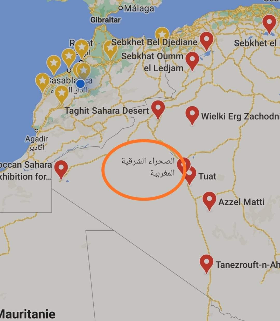 نعم هي طريق مختصرة نحو موريتانيا السائقين الجزائريين و عصابة البوليساريوما هذا التجمع الكبير للشاحنات في منطقة بئر الحلو في المناطق العازلة ؟