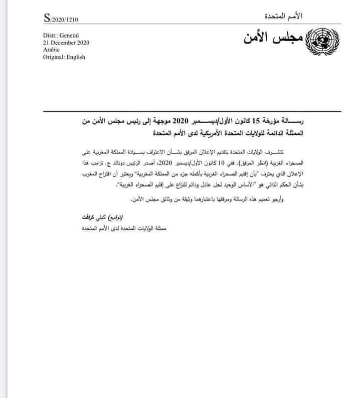 أمريكا توزع قرار الاعتراف بمغربية الصحراء على الأعضاء 193 للأمم المتحدة بما فيهم الجزائر