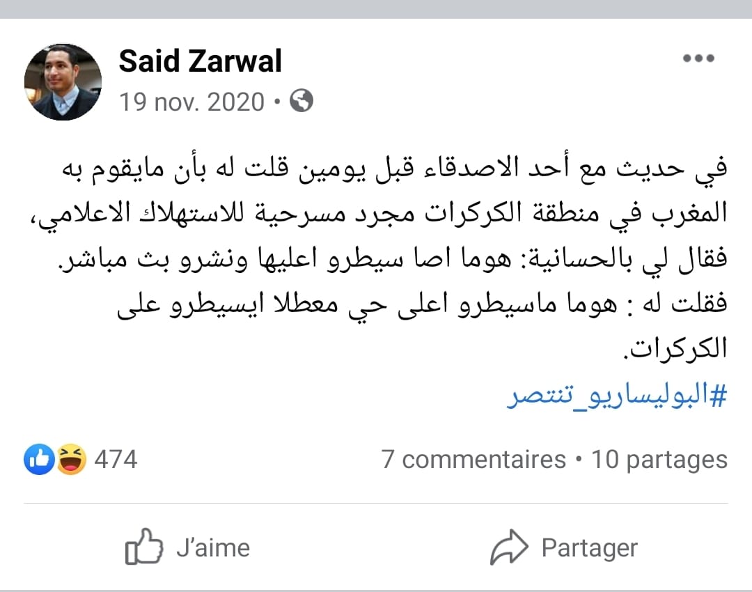 بيعهوم لعجل باش اسدو الكركارات و هو كالس فسويد مبرع.يسمي نفسه صحافي و محلل سياسي