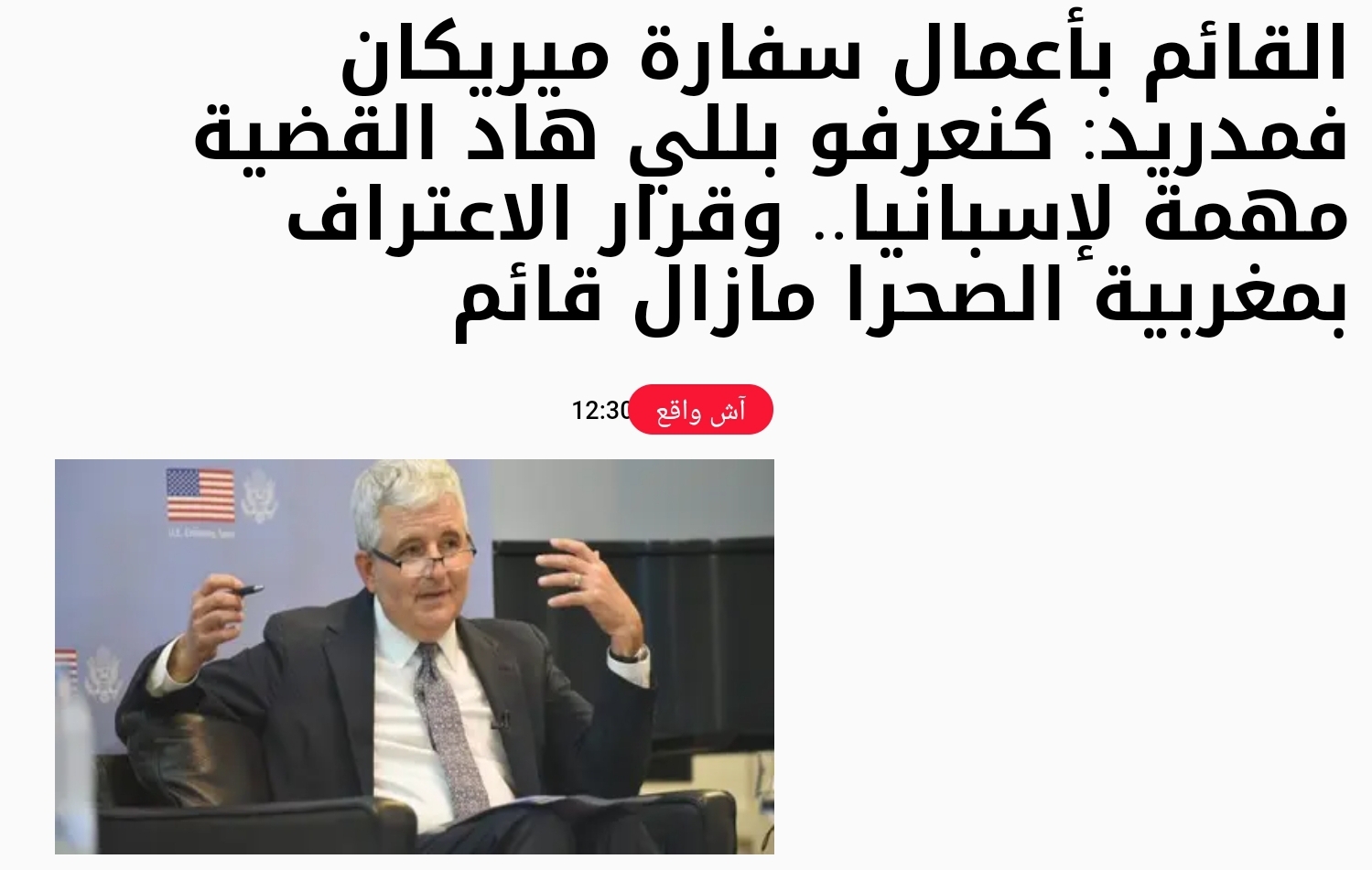 وأورد كونراد تريبل في سياق متصل ل “إلباييس”، أن الإدارة الأمريكية تسعى للتشاور مع حلفائها ودعم الأمم المتحدة في أي قرار بخصوص النزاع، قائلا “ما يمكنني التأكيد عليه هو أن هذه الإدارة تسعى إلى التشاور مع الحلفاء ودعم المؤسسات متعددة الأطراف مثل الأمم المتحدة وأي قرار يتم اتخاذه في حالة كهذه سيكون ضمن هذا الإطار”.