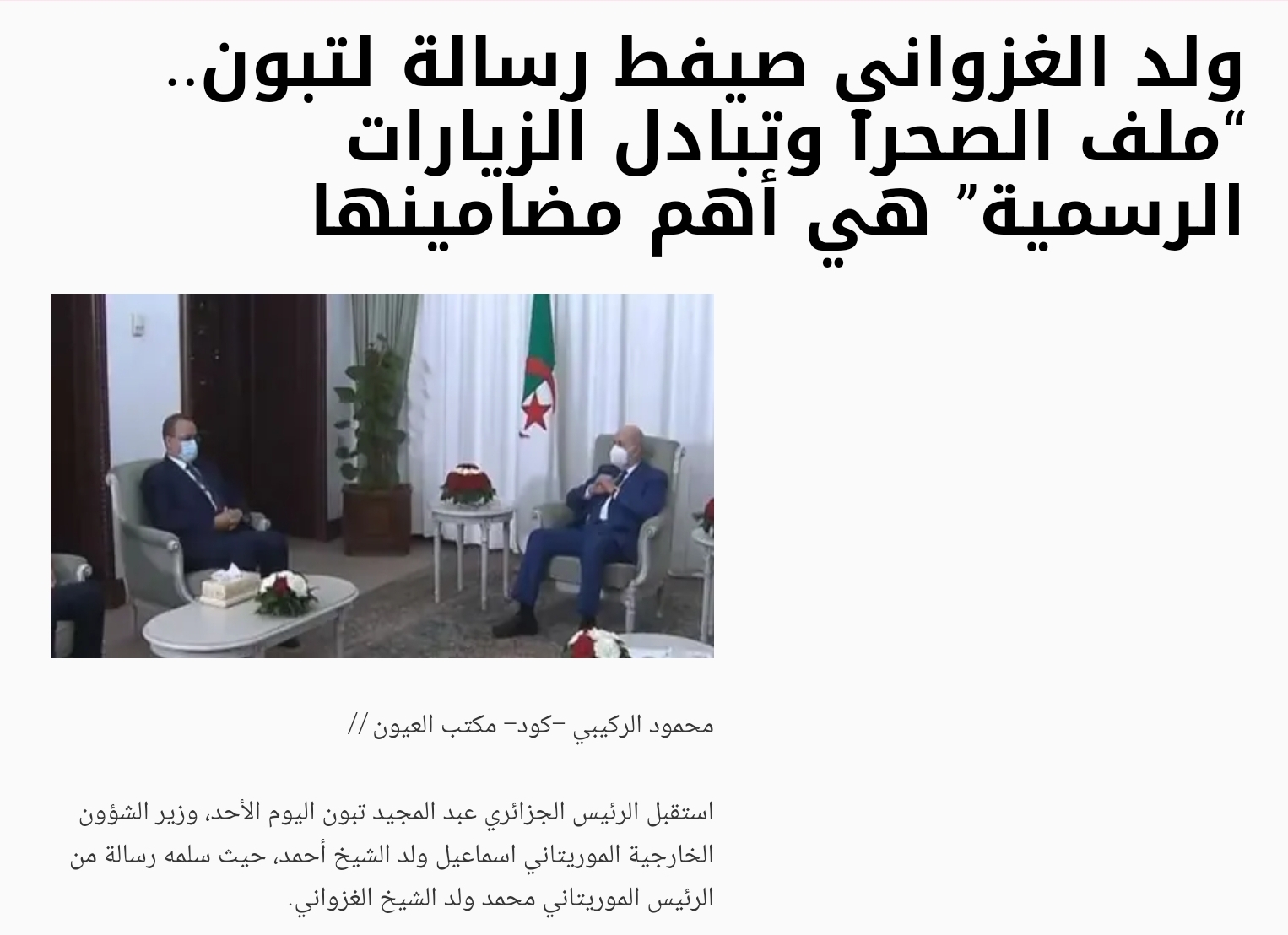 ووفقا لبيان صادر عن رئاسة الجمهورية الجزائرية، فقد سلم الوزير الموريتاني للشؤون الخارجية، رسالة إلى الرئيس الجزائري عبد المجيد تبون، من نظيره الموريتاني محمد ولد الشيخ الغزواني.
