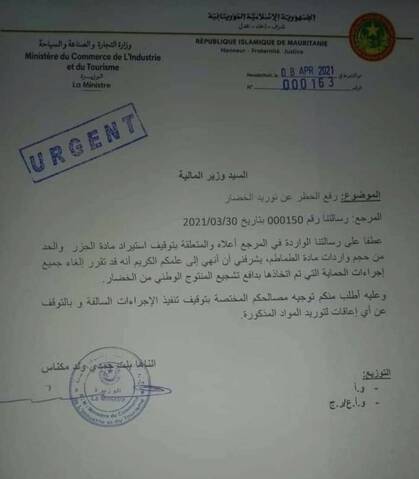 هههه موريتانيا تلغي قرار منع استيراد الخضر وبصيغة عاجل جدا