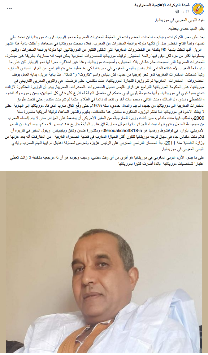 الموريتان غير سامعين بالحشيشزعما هذا مايكونش ضرب طجين من ذوك "الخضروات" اللي كاتمشي لموريتانيا قبل ما يكتب المقال
