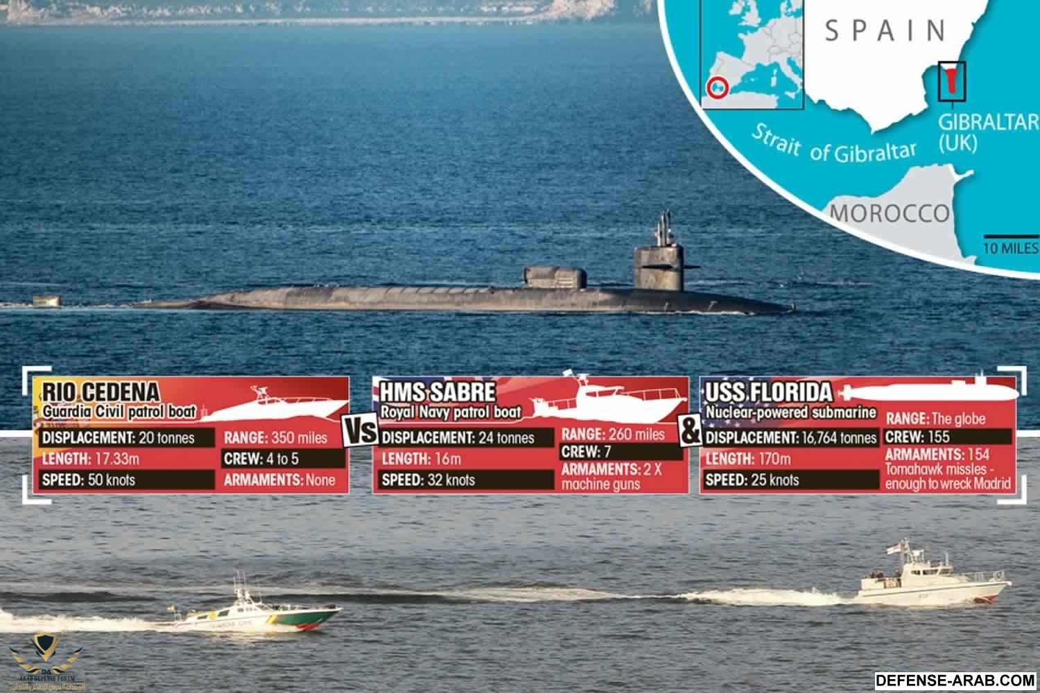 زورق إسباني تحرش بغواصة نووية أمريكية ترسو في ميناء جبل طارق فردت عليه دورية بحرية بريطانية بطلقات تحذيرية التفاصيل في الصور المرفقة