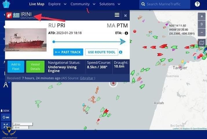 ناقلة نفط روسية بسعة 50 ألف طن دخلت لميناء طنجة المتوسط حسب موقع Marine Trafic