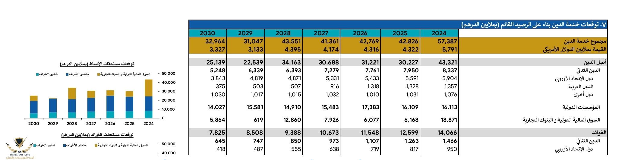 بالنسبة ل 2025 ليس لدي الرقم بالضبط في انتظار قانون المالية لعام 2025 الذي تصدر النسخة الاولى منه في شهر شتنبر عادة لكن عموما مبلغ الديون الواجب تسديدها لعام 2025 سيكون ما بين 2،5 و 3 مليار دولار
