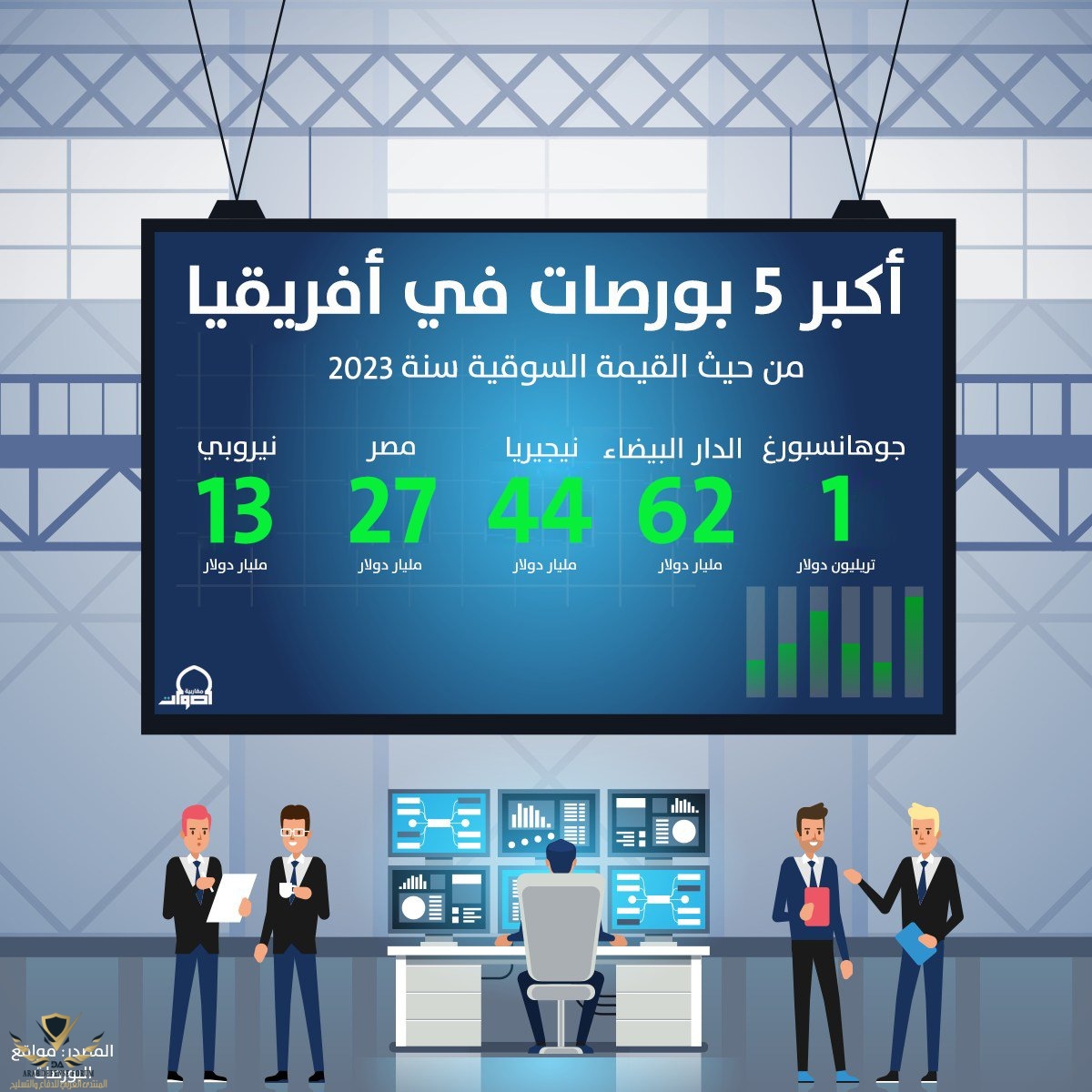 البورصة الجنوب الافريقية قيمة واصل الى 1 ترليون لاقتصاد الناتح المحلي ديالو يساوي 380 مليار دولار تقريبا
