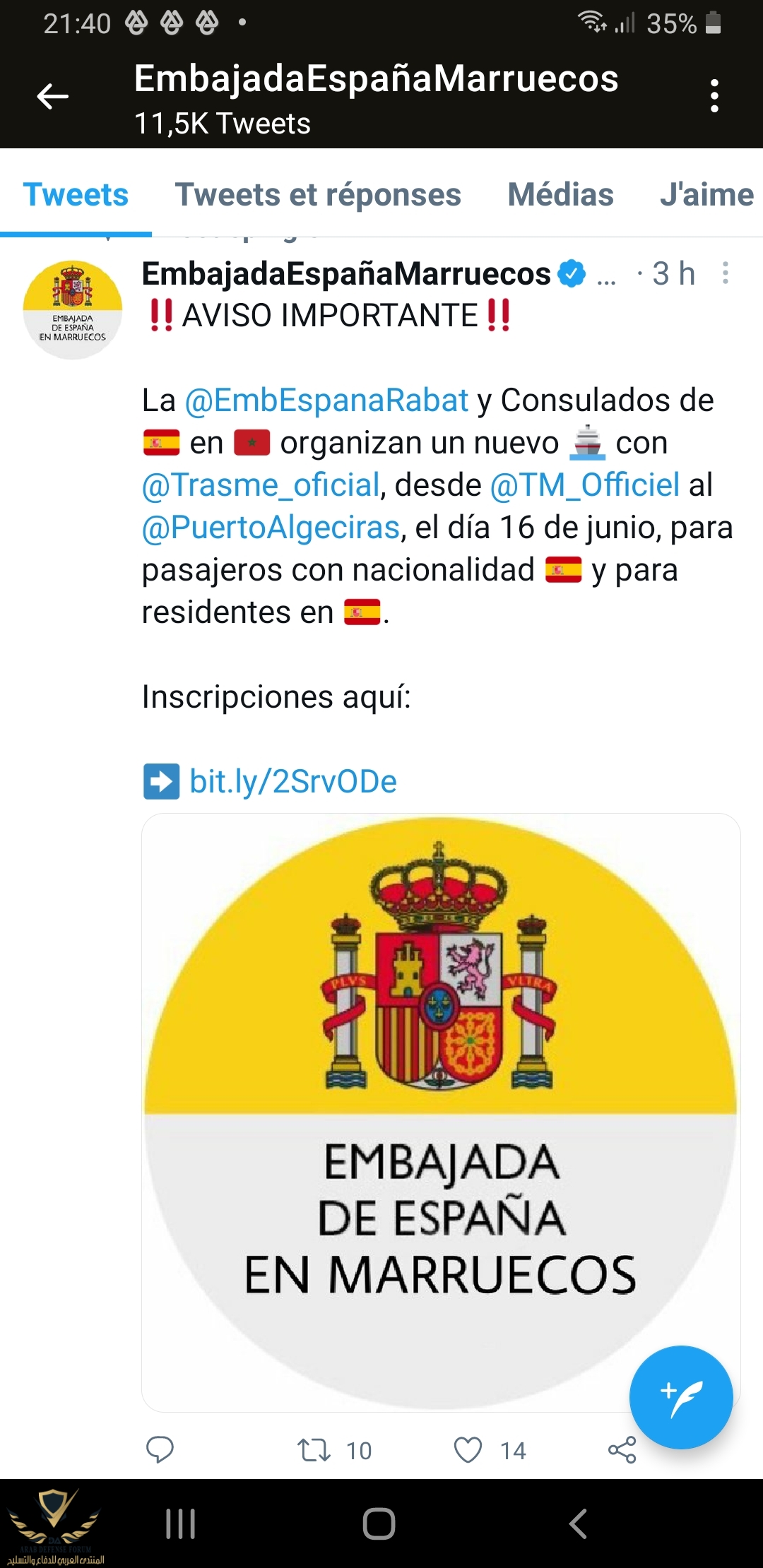 حسي السفارة الاسبانية في المغرب هناك رحلات بحرية بين اسبانيا و المغرب لكن فقط للمقيمين و حاملي الجنسية الاسبانية