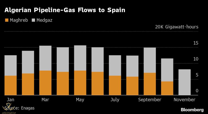 لا شيء يفسر تخلي الجزائر عن الانبوب سوى انهم يريدون تخفيض الصادرات من الغاز لسبب ما. انخفاض احتياطهم ربما ؟ ام انبطاحا للروس ؟ مع بداية نوفمبر الغاز الجزائري نحو اسبانيا ينخفض للنصف.