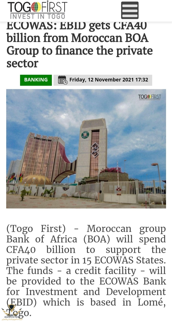 مجموعة دول غرب إفريقيا ECOWAS تحصل على قرض من Bank of Africa المغربيبقيمة 70 مليون دولار لتمويل مشاريع في دول المنطقة .