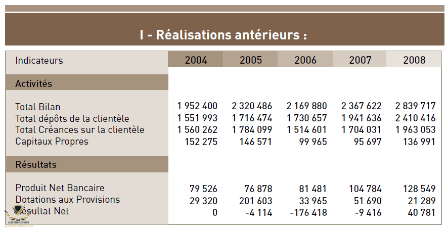 جميع نتائج البنك منذ استقرارها بتونس {التجاري بنك فرع تونس }