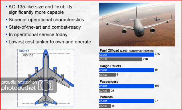 تستخدم بوينغ في هذه المنافسة طرازاً جديداً من طائرة Boeing 767، بينما عرضت شركة إي إيه دي أس طائرتها A 330. وباختياره للجيل الجديد من طائرات الصهريج من بوينغ بعد المنافسة القاسية، يكون سلاح الجو قد اختار طائرة صهريج أميركية الصنع متعددة المهام تعتمد تصميم بوينغ 767 التجارية المجربة، وتتوافق مع كافة المتطلبات لدرء الأخطار التي يتعرض لها المقاتل.