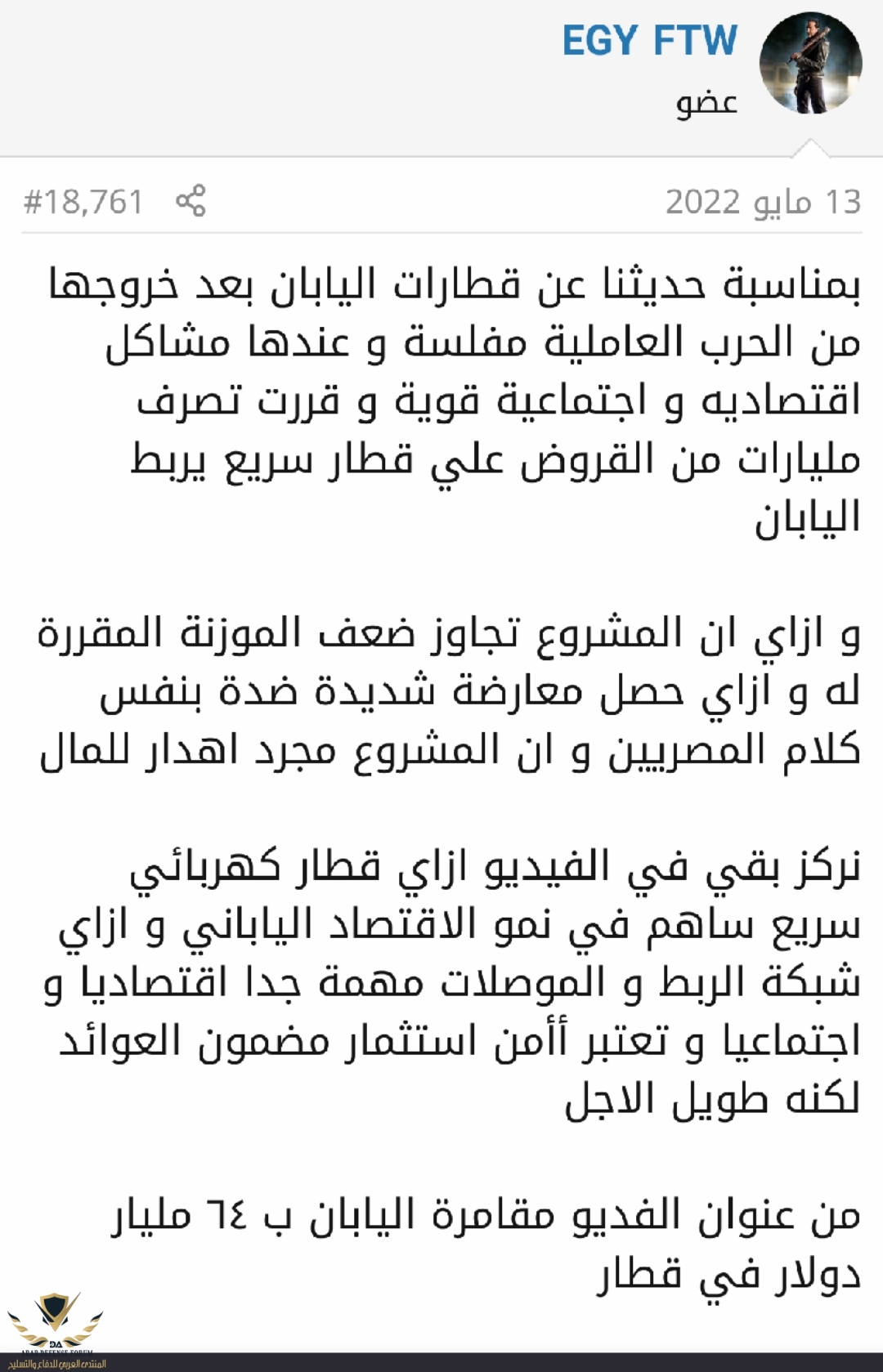 ايوة فعلا و لو كملت هتلاقي المصدر بتاعيبس بطل تطبيل وما تعرضش الخط ذي تعريضه ان اليابان حققت تقدم اقتصادي بسبب قطارات الكهربا وان كل المشاريع في مصر ليها دراسات جدوي