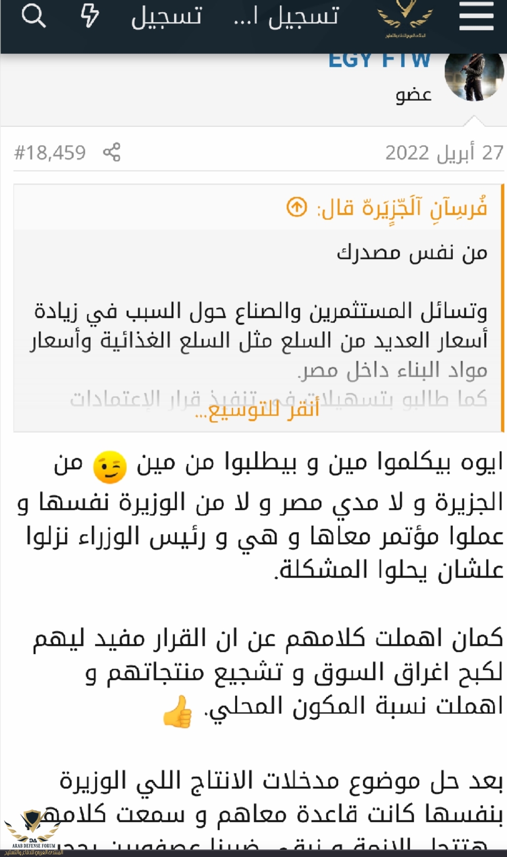 المضحك ان كلامي كان بمصدر فعلا من و كالة بلومبرج و اللي قالت التعويم هيكون في حدود ال 10% و لم يكن و قتها في ابريل اي تضخم نهائياحلوه ضرب الاستيراد