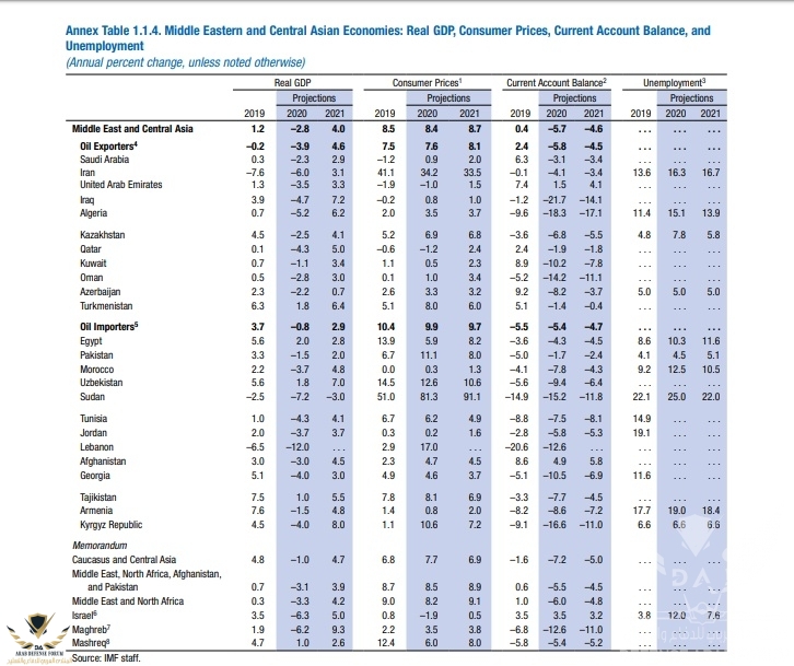 ربنا يكرمك ياحج واتمنى اكون عند حسن الظن دائم ، مصر بحسب تقرير صندوق النقد الدولي ربما تكون الدولة العربية الوحيدة التي لن ينكمش اقتصادها وفق التوقعات المبدئية ع امل احتواء الفيروس بالربع الثاني ويعود ذالك للنمو الكبير الذي تحققه وكان من المتوقع ان ينمو اقتصادها هذا العام بنسبة 5.9% لكن في تقرير "صندوق النقد" توقع ان ينمو الاقتصاد هذا العام 2% فقط بسبب كورونا كما توقع ايضاً ان يبلغ عجز الموازنة كنسبة من الناتج المحلي 7.7% حوالي 27 مليار دولار مع عودة صعود الدين العام مرة اخرى بعد انخفاضه