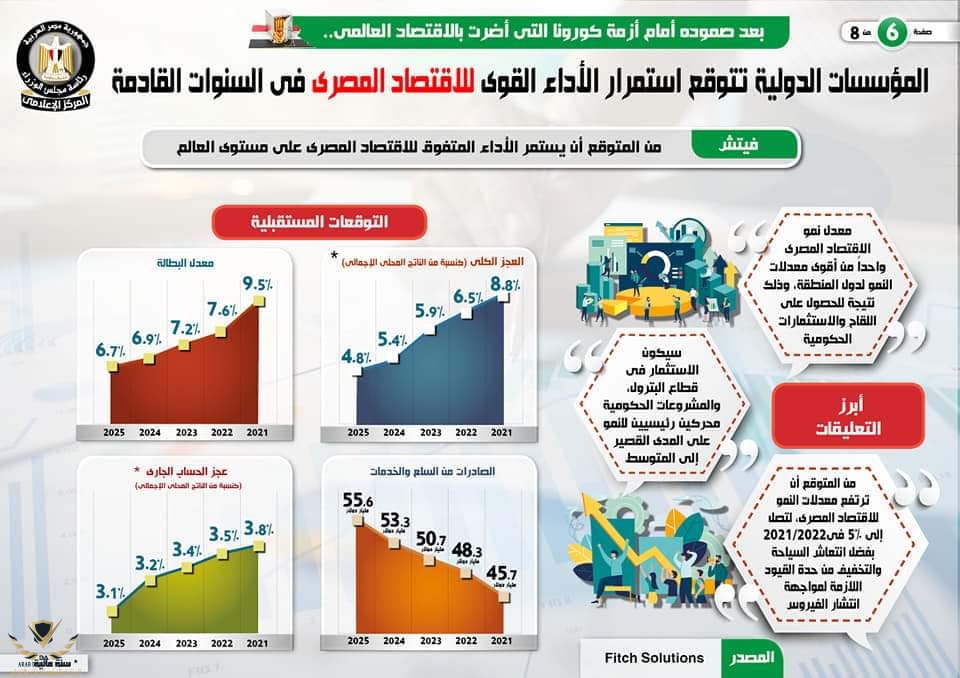 بالإنفوجراف...المؤسسات الدولية تتوقع استمرار الأداء القوي للاقتصاد المصري في السنوات القادمة