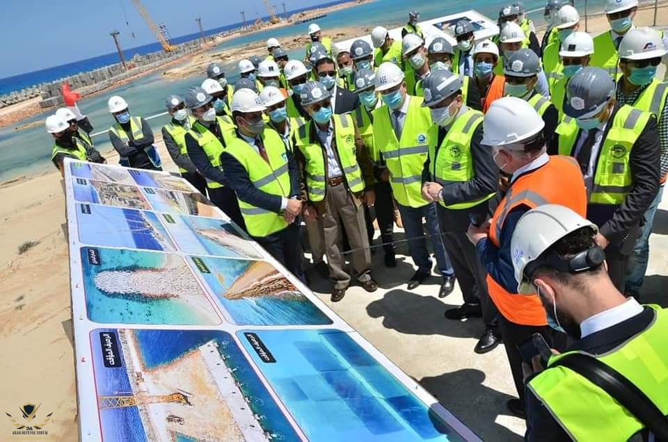 وقد أشاد السيد الوزير بدور الهيئة الهندسية للقوات المسلحة في تنفيذ أعمال المدينة السكنية والرصيف البحري.