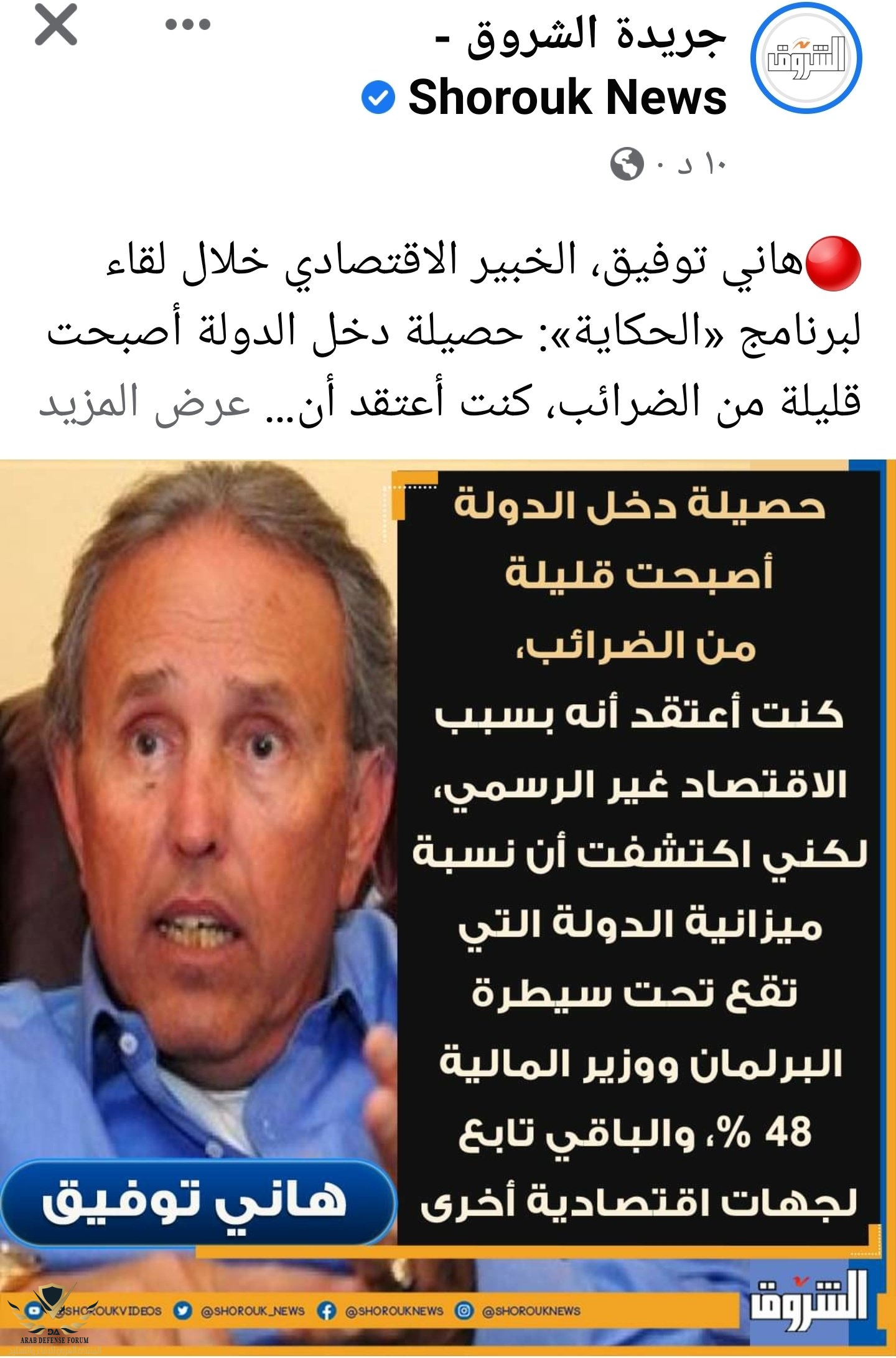 إنتا فاهم غلط 52% من الأقتصاد الرسمي لا يدفع ضرائب هو اقتصاد الجيش والصناديق الخاصه