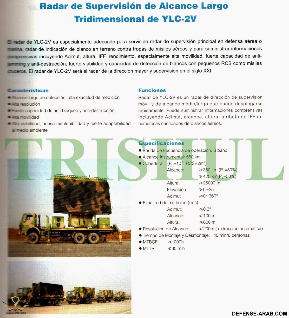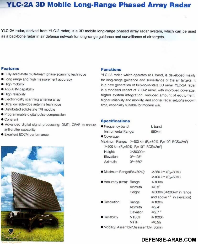 "رادارYLC-2V توفير معلومات كبيرة من الاهداف في الاجواء وبعد المسافة، والطول، وغيرها من الاحداثيات