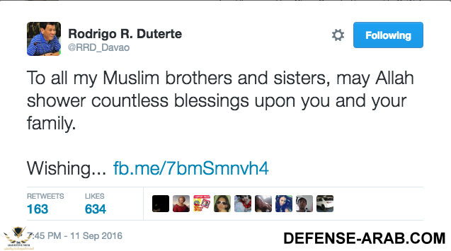 الرئيس الفلبيني سبق وان قال ان "امريكا لم تعتذر عن قتل ١٠٠٠ مورو(مسلمين) فلبيني"