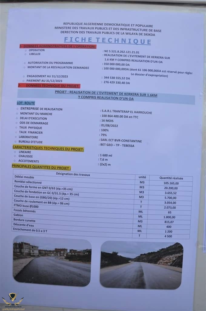 صور من ورشات إنجاز الخط عالي السرعة المزدوج والمكهرب الذي يربط وهران (واد تليلات) بسيدي بلعباس وتلمسان على مسافة 132 كلم بسرعة قطارات تصل إلى 220 كلم في الساعة، للإشارة فإن هذا المشروع يتضمن حفر نفق بطول 642 مترا وتشييد 51 منشأة للسكة الحديدية منها جسرين بعلو 130 مترا، إضافة إلى 41 منشأة للطرق وعديد المنشآت الهيدروليكية.